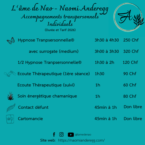 - Pour les séances en Hypnose Transpersonnelle® et en Ecoute Thérapeutique, un enregistrement de la séance afin de poursuivre les prises de conscience post séance.